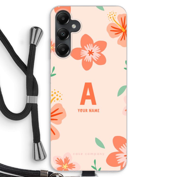 Etui na Samsung Galaxy A05s - Tropical Pink Flowers Monogram